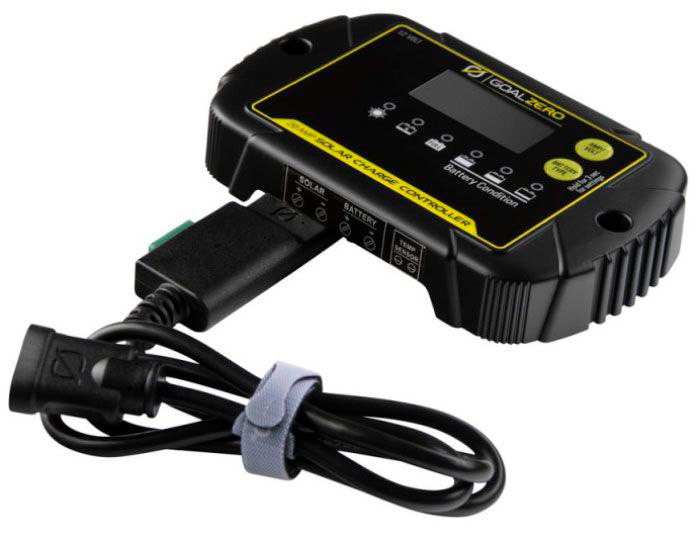Le contrôleur de charge est livré avec un port haute puissance intégré pour la connexion aux panneaux solaires Goal Zero Boulder 200. Pour connecter et charger une batterie 12 V, vous devez acheter le câble Spade vers SAE et des adaptateurs de câble supplémentaires. Nous recommandons le SAE vers Ring Terminal ou le SAE vers Alligator Clip.