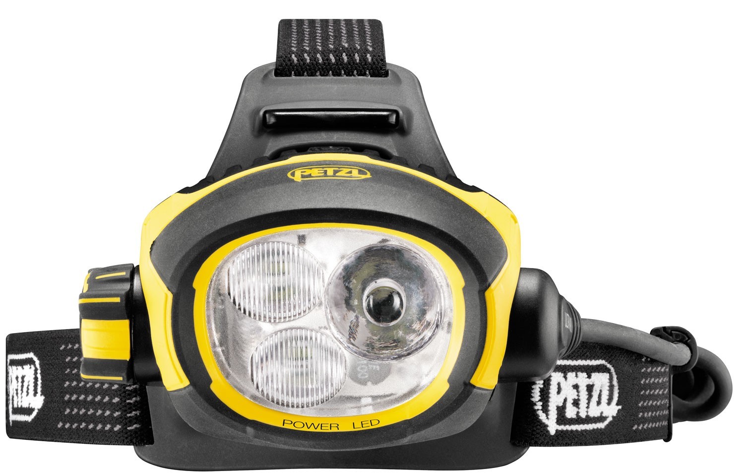 Linterna frontal ultrapotente y multifoco con batería recargable separable, destinada a los trabajos exigentes y de larga duración, o a actividades donde la potencia y precisión de la iluminación son indispensables como la espeleología o el alpinismo.