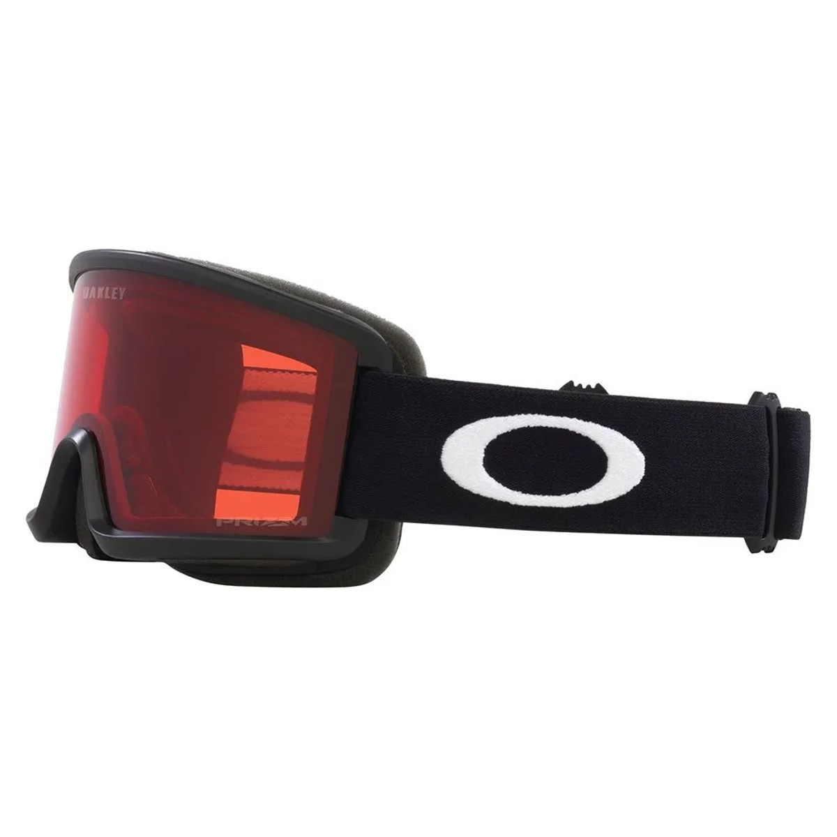 Máscara de esquí Oakley Target Line S con lente cilíndrica y montura de perfil bajo para una visibilidad óptima y compatibilidad con casco. Disponible en tamaño juvenil con correa ajustable y lente Prizm Rose.