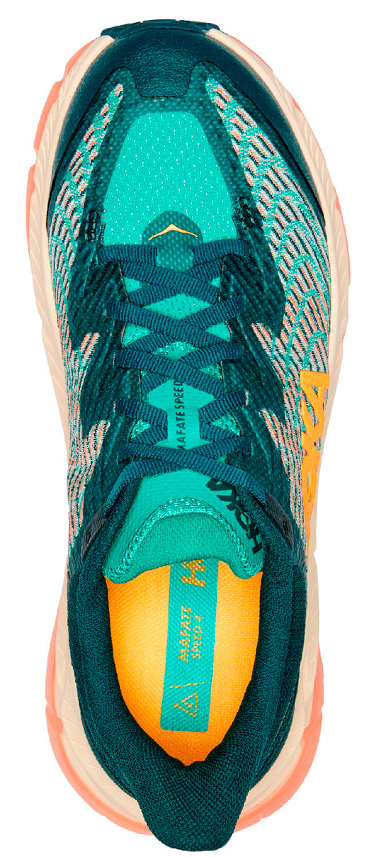Las nuevas Mafate Speed 4 son unas zapatillas clave para senderos técnicos que aúnan los puntos fuertes de las EVO Mafate y las Mafate Speed. Presentan las mismas líneas, actualizadas con nuevos tejidos y confección, incluida una malla de jacquard transpirable de una sola capa y una entresuela PROFLY™ de doble densidad con nuestra espuma HOKA más ligera y con mayor capacidad de respuesta debajo del pie.