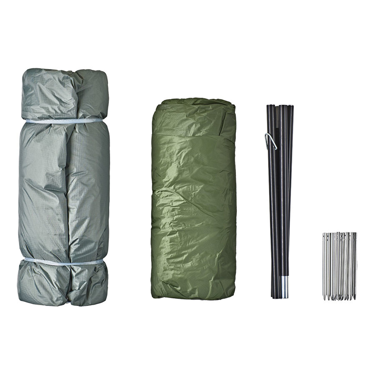 - Külső sátor: 20D Ripstop Nylon szilikonnal, PU vízszigetelés 3000 mm.