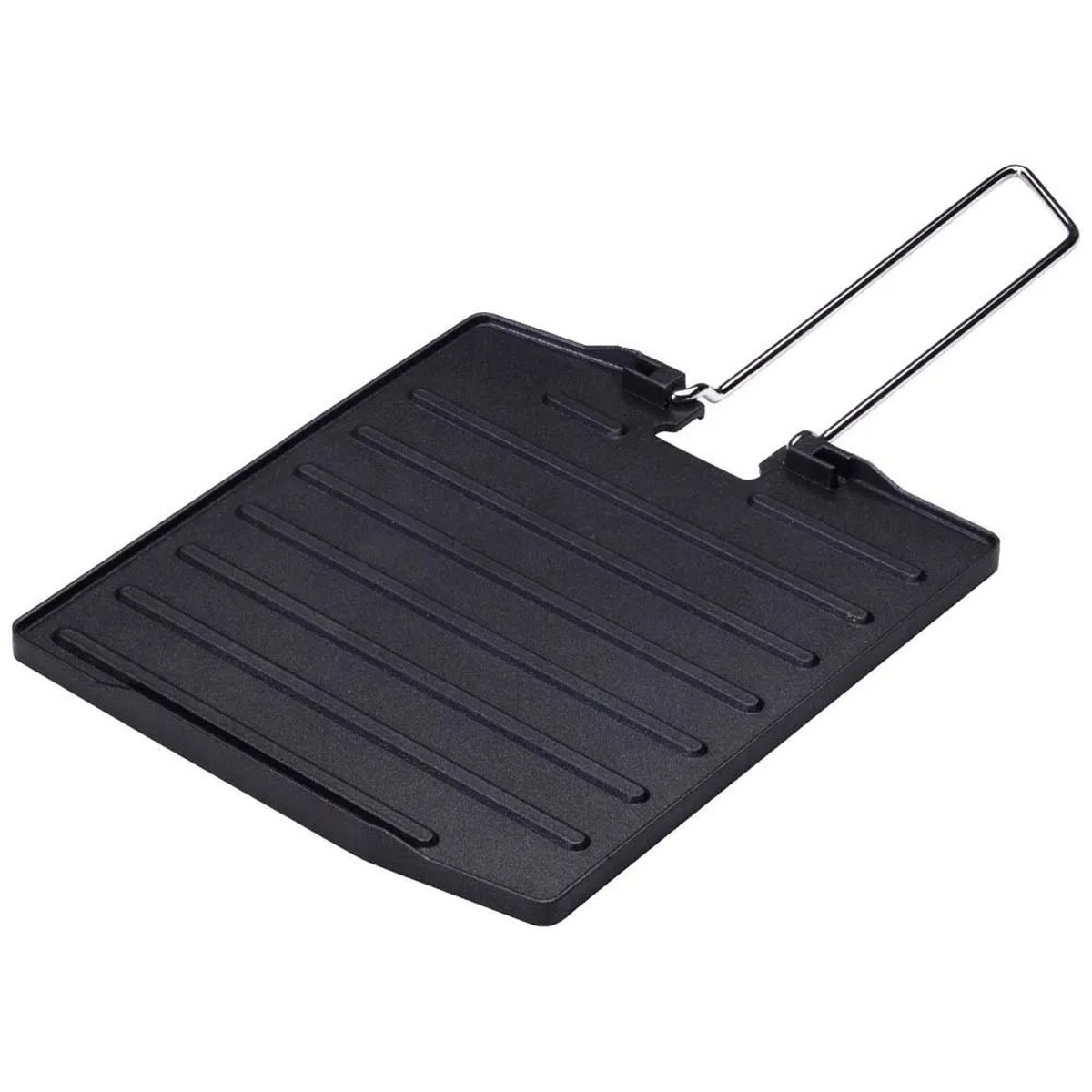 Piastra in alluminio pressofuso per una distribuzione uniforme del calore. Superficie antiaderente facile da pulire. Progettato per drenare il grasso e ottenere una superficie grigliata. Compatibile con la stufa Tupike e la maggior parte delle stufe a due fuochi.