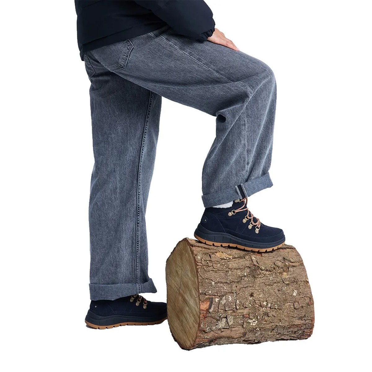 La tomaia è realizzata in pelle scamosciata trattata™ Scotchgard per una maggiore resistenza all'acqua e alle macchie. L'interno, foderato in sherpa sia sulla linguetta che sulla soletta, offre una piacevole sensazione di comfort e calore. La suola in gomma con tasselli aggressivi garantisce una trazione sicura sui terreni alpini.