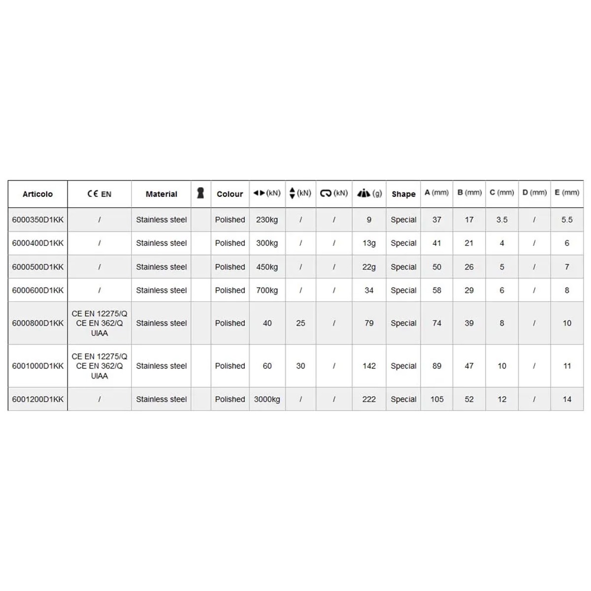 Características maillon kong quick links-acero inox 5mm