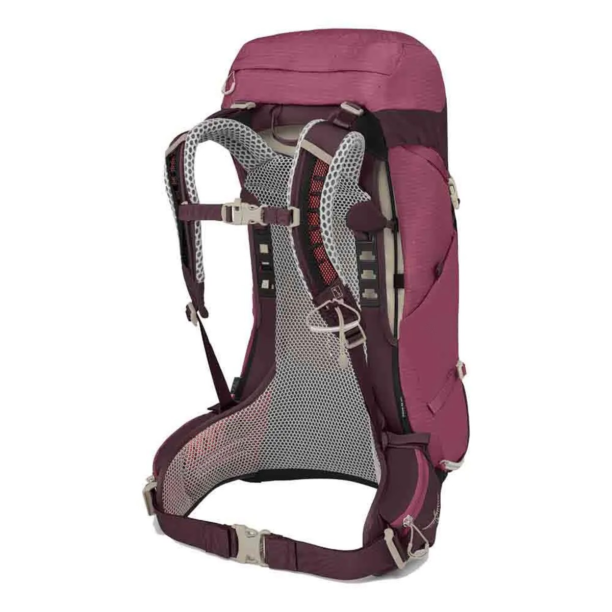 "Osprey AirSpeed"™ galinis skydelis užtikrina puikią ventiliaciją ir sumažina prakaito diskomfortą. Reguliuojamas krūtinkaulio diržas ir klubo diržas užtikrina patogų ir individualų prigludimą, sumažina pečių ir nugaros įtampą. Be to, jis suderinamas su drėkinimo sistemomis.