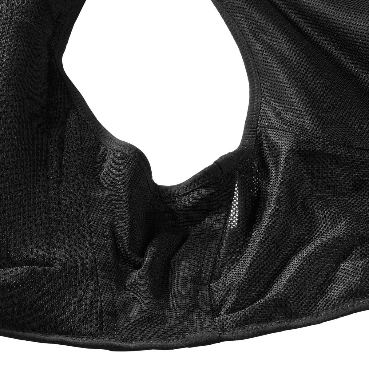 - 2 priekinės kišenės vandens buteliams: suderinama su Salomon minkšto vandens buteliais, šios priekinės kišenės riboja atšokimą. Viršutinės elastinės kilpos apsaugo butelius ir padeda juos atsigerti.