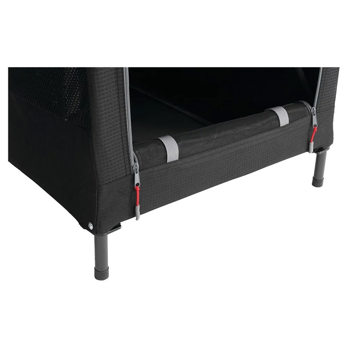 Jo išmanus dizainas apima lengvai valomą suvyniojamą viršų, tinklines dureles, užtikrinančias gerą oro cirkuliaciją, ir greito užsegimo fiksavimo sistemą, kad būtų lengviau surinkti. Dvigubas užtrauktukas leidžia lengvai pasiekti vidų, o reguliuojama pėda užtikrina stabilumą važiuojant nelygiu paviršiumi.