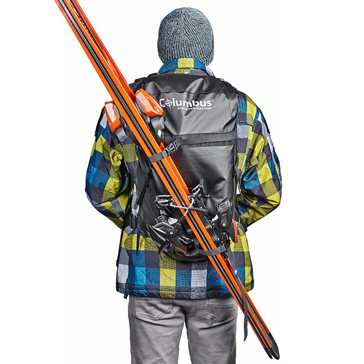 Con un volumen de 30 litros, esta mochila te permite llevar todo el equipo necesario. Incorpora un bolsillo frontal para pala, sonda y otras herramientas, así como un compartimento específico para material técnico, incluyendo porta-piolets/bastones y cintas para raquetas de nieve o esquís. El panel frontal con sistema MOLLE permite transportar esquís o tabla de snowboard.
