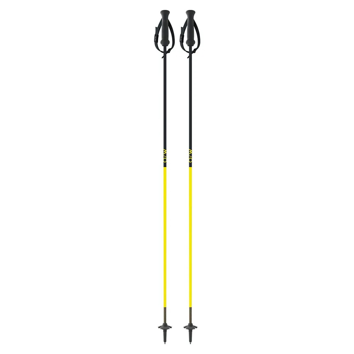 Ultralichte en dunne skistokken met carbonconstructie voor veeleisende skiërs. Ergonomisch handvat en bescherming van de rand van aramide ski's.