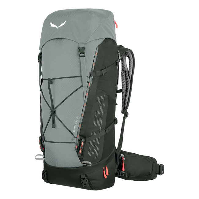 Salewa Alptrek 42+5L rugzak: comfortabel, verstelbaar en duurzaam voor alpine trekking. Uitbreidbare capaciteit van 42+5 liter, Dry Back Custom-systeem en compressieriemen voor een optimale pasvorm. Ruime zakken voor extra uitrusting.