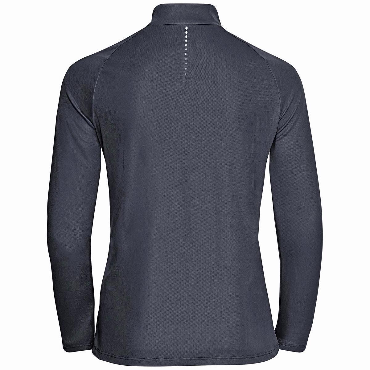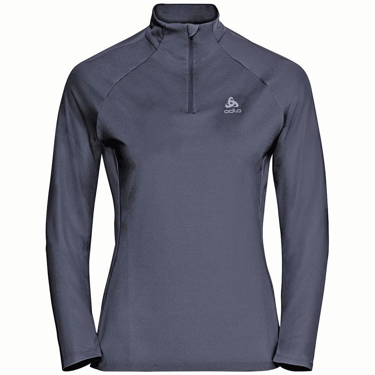 Optimiza la calidez y el rendimiento al correr este invierno con la camiseta de manga larga con media cremallera ZEROWEIGHT CERAMIWARM de ODLO para mujer.