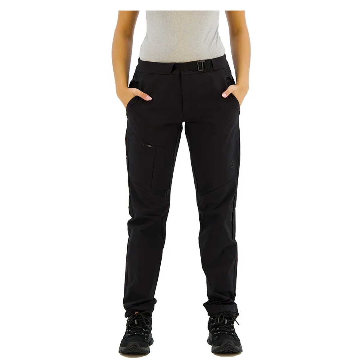 Pantalones de senderismo Ascent de Odlo, ligeros, resistentes al agua y elásticos. Cinturón integrado, bolsillos con cremallera y acabado repelente al agua para mayor comodidad y protección en la montaña.