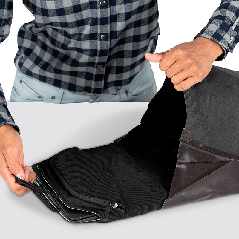 - Bolsillo con cremallera impermeable en el panel frontal