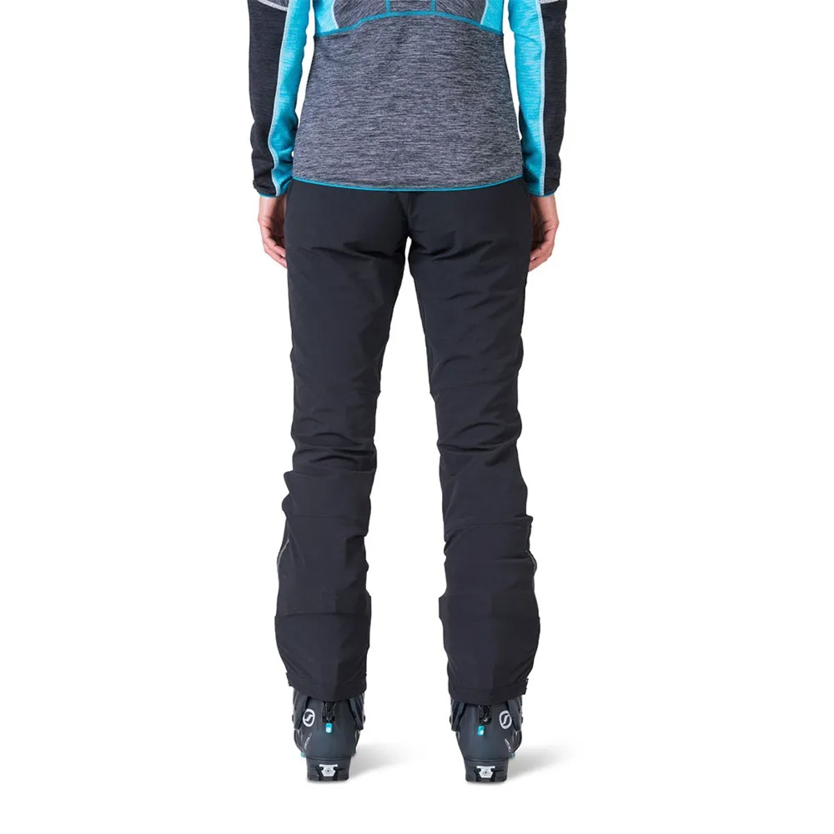 Calças de esqui femininas, feitas com tecido AFT Double Weave Thermo, que é repelente de água, resistente ao vento e respirável.