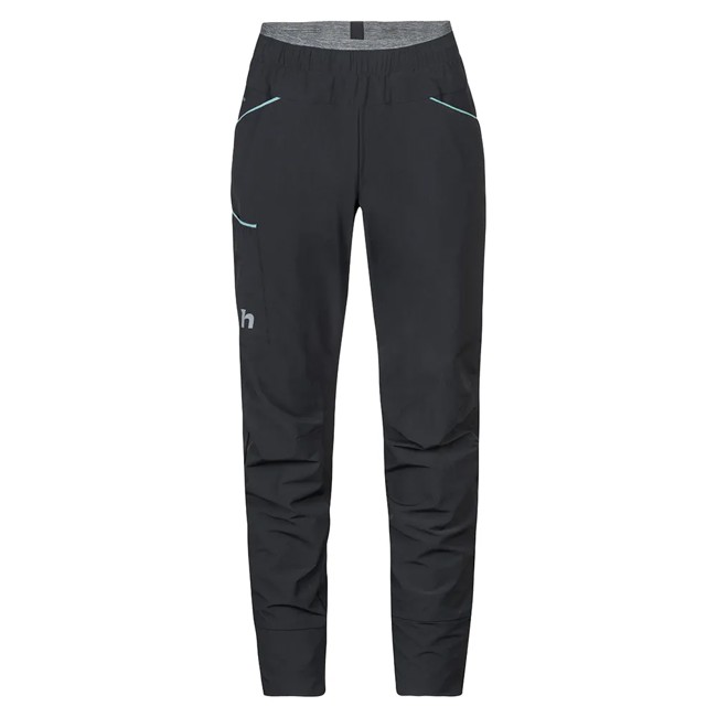 Calças de trekking femininas, leves, resistentes e elásticas. Cintura elástica, joelhos pré-moldados e ajuste ergonómico para total liberdade de movimentos. Bolsos espaçosos e repelência à água sem PFC.