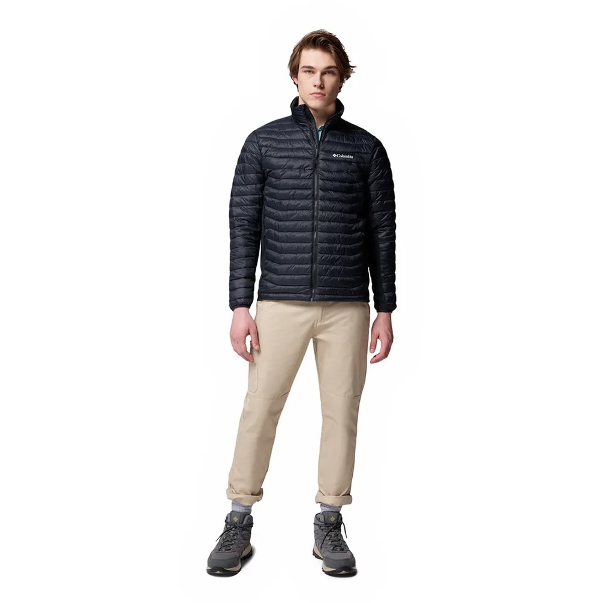 Casaco híbrido com isolamento leve e tecnologia impermeável. Painéis laterais elásticos para maior mobilidade. Ideal para caminhadas.