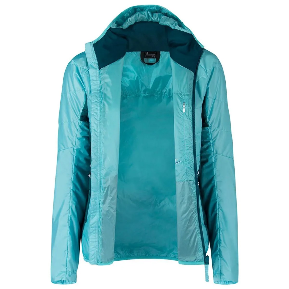 Casaco acolchoado feminino com capuz, membrana 15K/15K e enchimento Comfortemp®. Ideal para escalada, montanhismo e atividades ao ar livre.