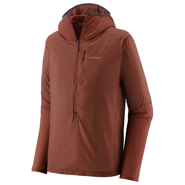 O Patagonia Airshed Pro P/O é uma jaqueta de corrida projetada para oferecer alto desempenho em trail running e treinamento. Feito com um tecido ripstop elástico feito de poliéster reciclado, proporciona conforto e liberdade de movimentos. O seu acabamento DWR sem PFC torna-o impermeável, enquanto o capô e o fundo da manga, com um acabamento miDOri bioSoft, oferecem suavidade e melhor capacidade de eliminação da humidade. Além disso, o tratamento HeiQ Mint proporciona resistência ao odor.