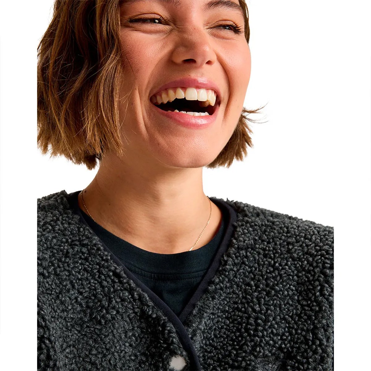 Casaco de lã Roxy Iconic Town com tecido sherpa reciclado, ajuste descontraído, forro de malha jersey e fecho de botão. Design vintage com bordado de coração Roxy.