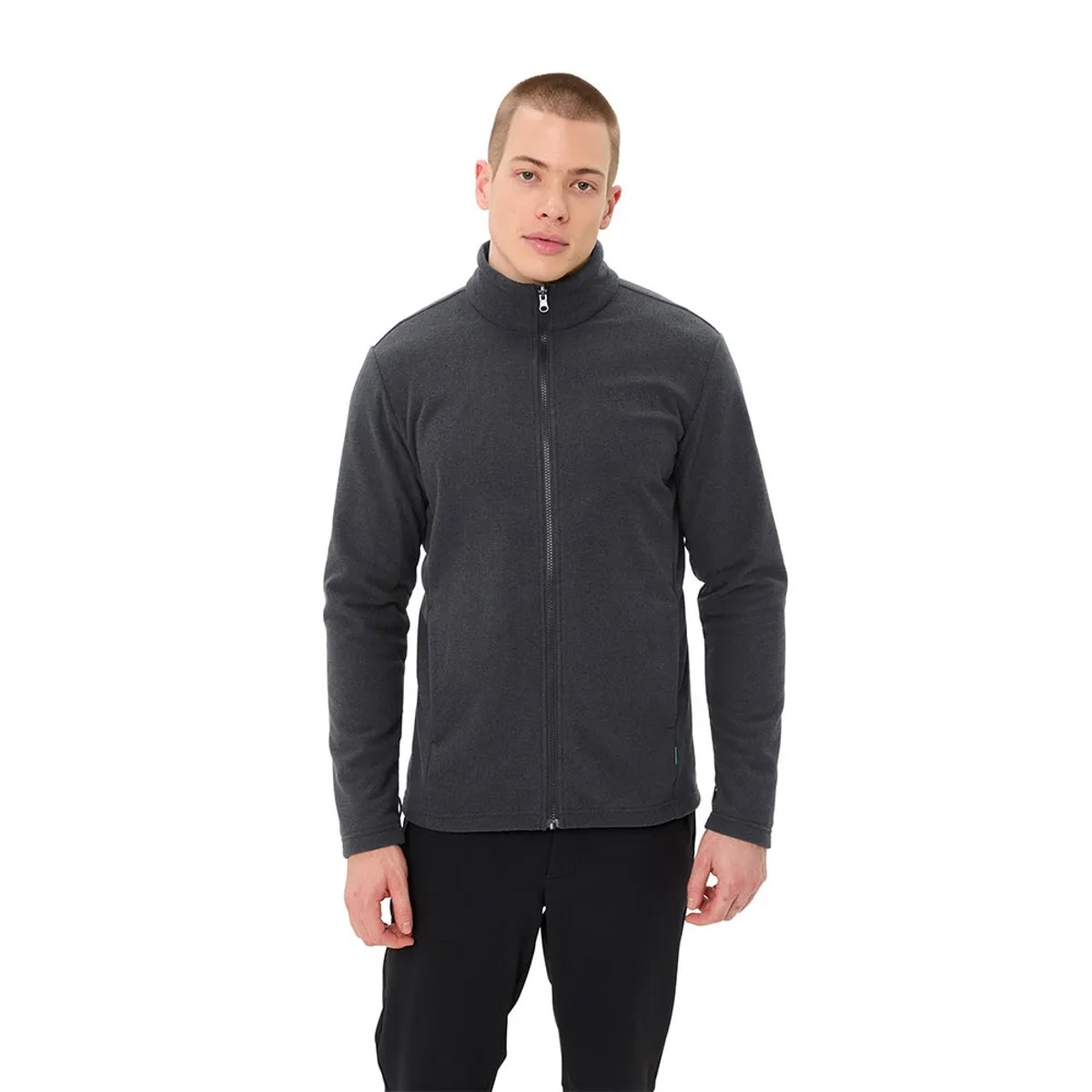 A jaqueta externa oferece proteção contra a chuva, enquanto a jaqueta interna oferece aconchego e conforto. O capuz é armazenado no pescoço para maior praticidade. Além disso, é feito com poliéster reciclado, tornando-se uma opção sustentável.