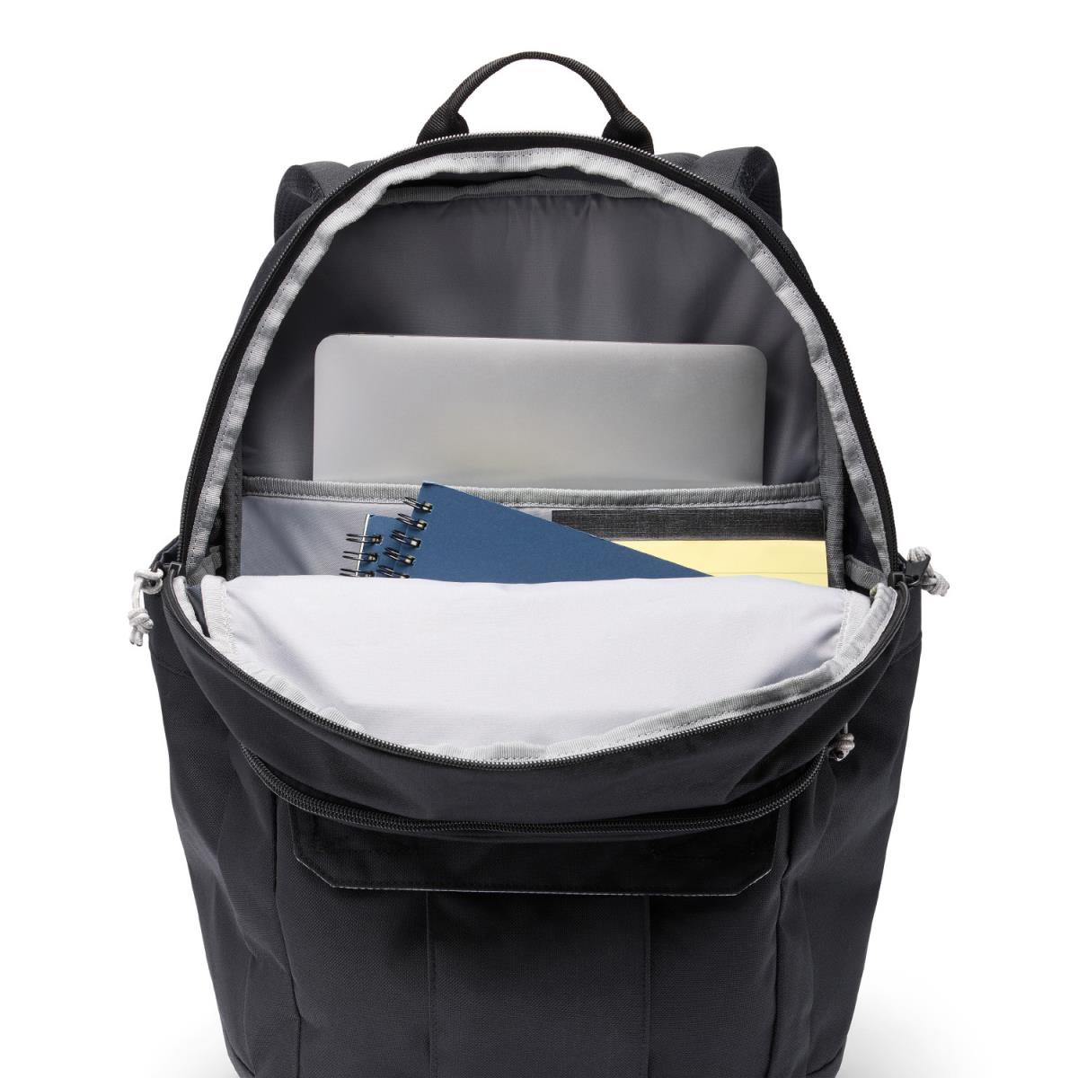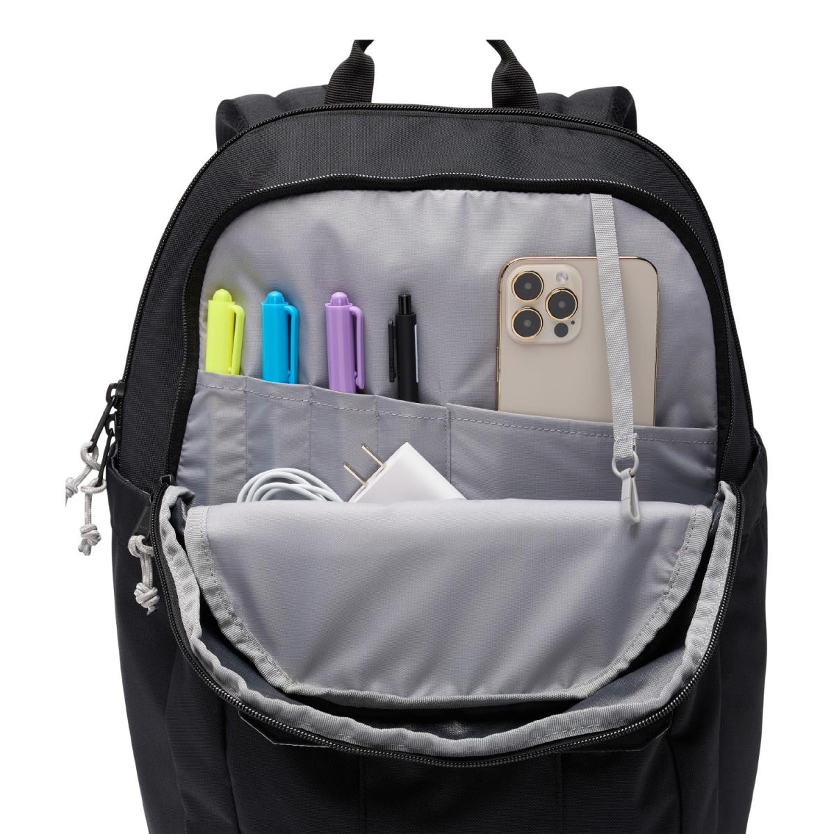 Seus pertences estarão seguros e protegidos em seus dois compartimentos internos separados, que incluem uma manga de laptop forrada de lã e um prático bolso frontal para seus itens mais importantes.