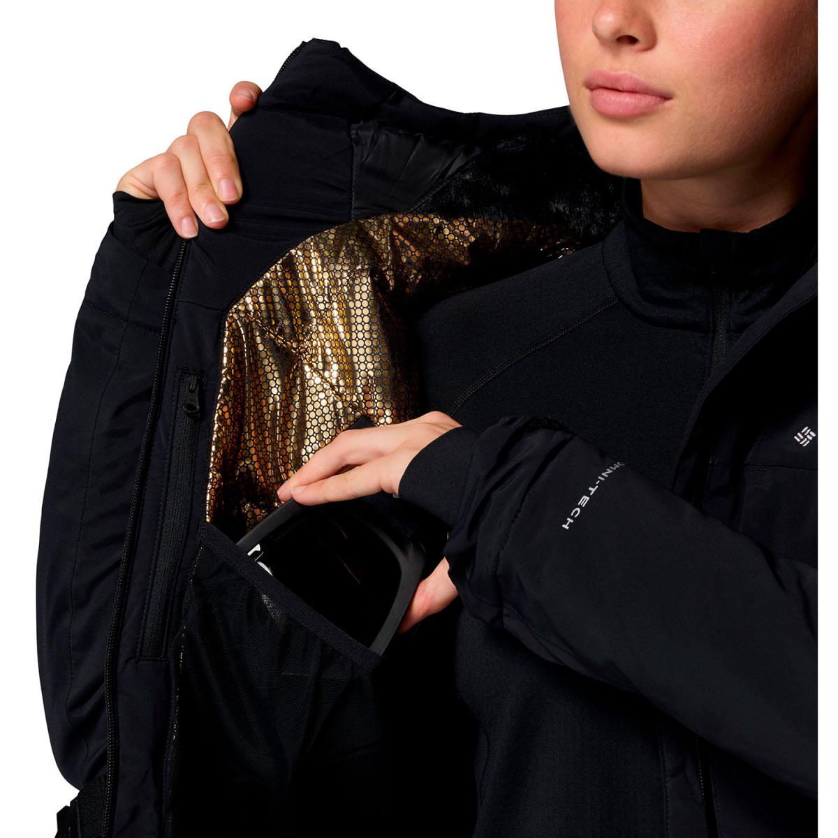 O isolamento está a cargo de um enchimento de fibra sintética que garante calor mesmo em condições húmidas. Além disso, a tecnologia refletiva Omni-Heat ajuda a reter o calor corporal, otimizando a capacidade térmica da jaqueta sem adicionar volume. Os punhos ajustáveis permitem uma vedação perfeita e tem um bolso específico para o passe de esqui.