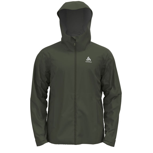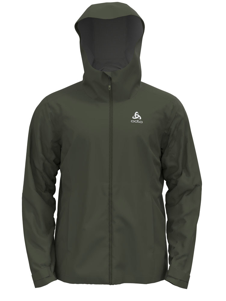Jaqueta impermeável com capuz da marca Odlo com exterior avançado impermeável e respirável de 2,5 camadas com coluna de água muito alta de 20.000 mm e respirabilidade Igualmente alta em >20.000 g/m²/24 h, este casaco outdoor destaca-se pelo conforto, respirabilidade e proteção impermeável.