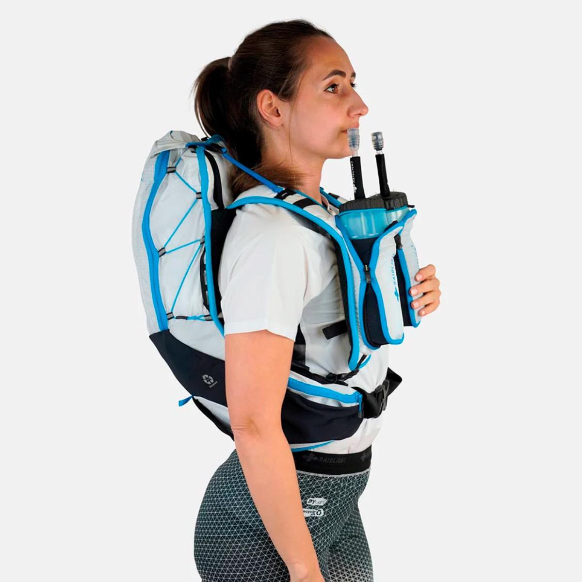 Com o seu enorme bolso traseiro de 22 litros, pode transportar todo o seu equipamento com total tranquilidade. Os seus inúmeros bolsos elásticos com fecho oferecem uma infinidade de opções de arrumação de fácil acesso. O seu compartimento superior transparente foi especialmente concebido para armazenar um farol GPS. Por último, mas não menos importante, desfrutará de mobilidade mãos-livres graças ao sistema de transporte com bastão na frente (na altura das garrafas de água), que o torna fácil de usar e lhe dá liberdade de movimento.