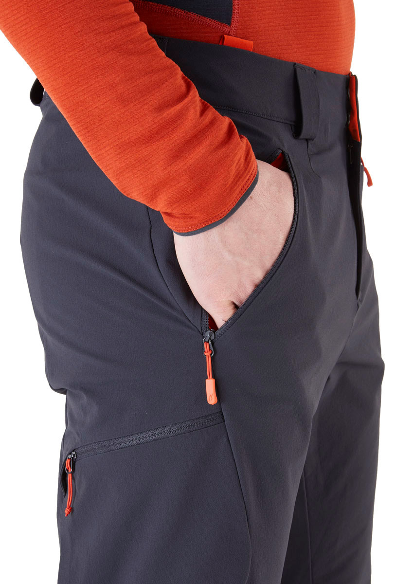 Pantalón softshell de la marca Rab para hombre, con un estudiado diseño para alpinismo y esquí de montaña.