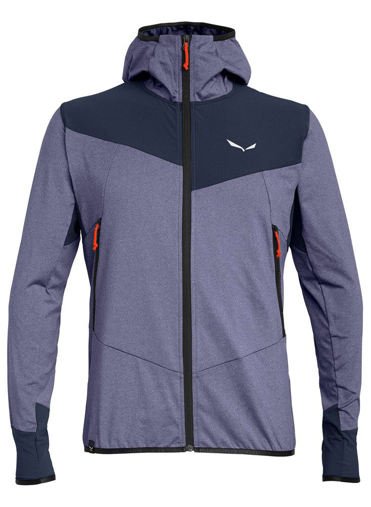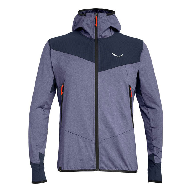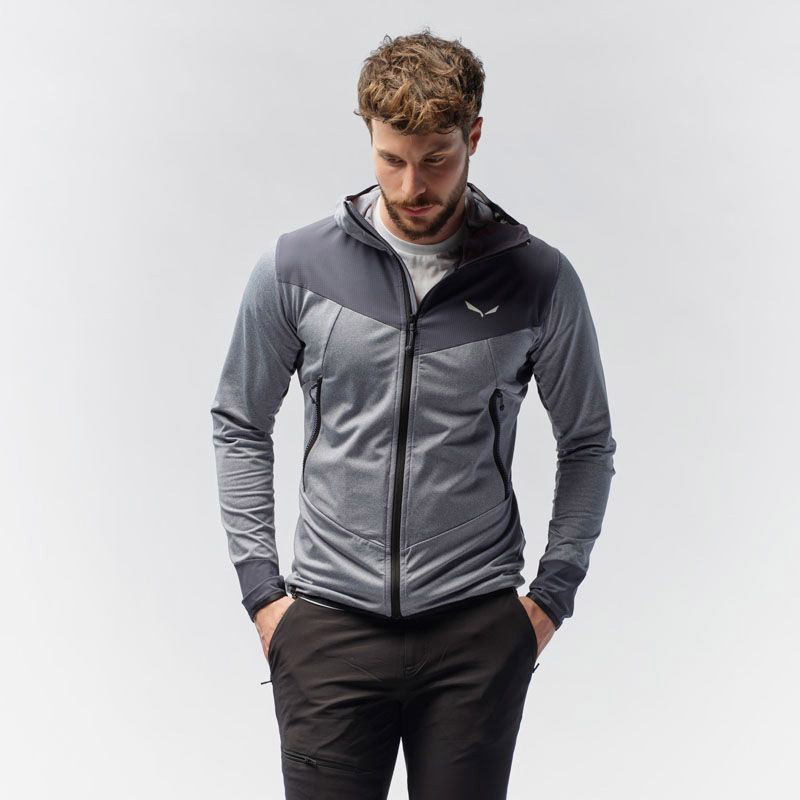 Chaqueta técnica de diseño híbrido de la marca Salewa para hombre, con un estilo deportivo creado para las actividades como la escalada y el trekking en época estival.