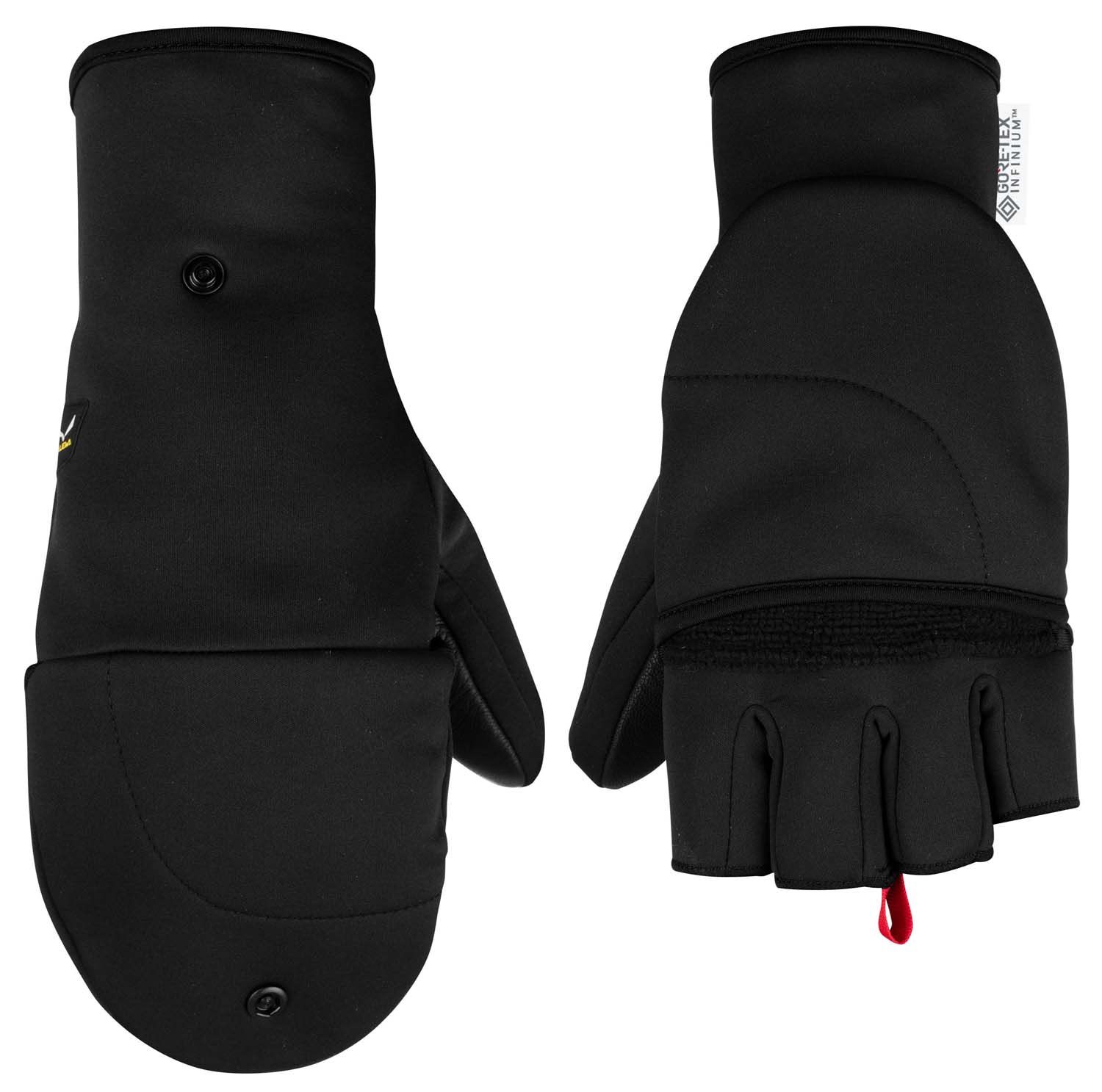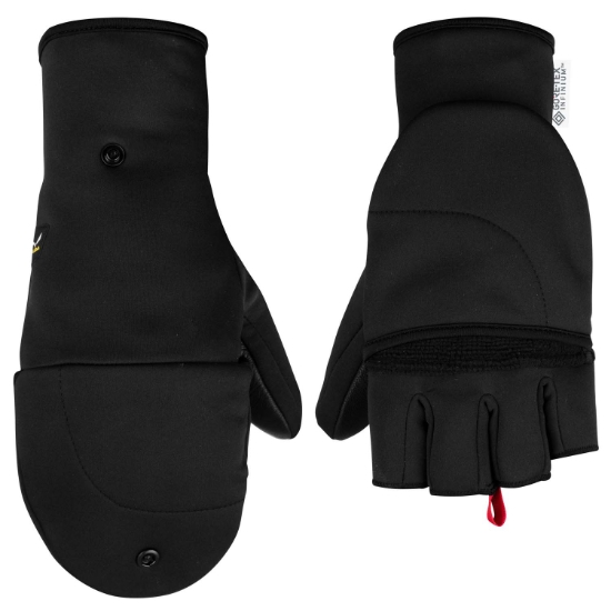 El Gore-Tex® Windstopper® Stretch bloquea el viento y la manopla plegable expone los dedos cuando se requiere una destreza total.