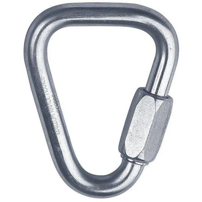 Mosquetón grande DELTA de acero galvanizado. Con una apertura de puerta de 10 mm, ofrece una excelente resistencia de 45 kN. Su construcción robusta y duradera lo hace ideal para diversas aplicaciones en montaña, garantizando seguridad y fiabilidad en cada uso. Con un peso de 153 g.