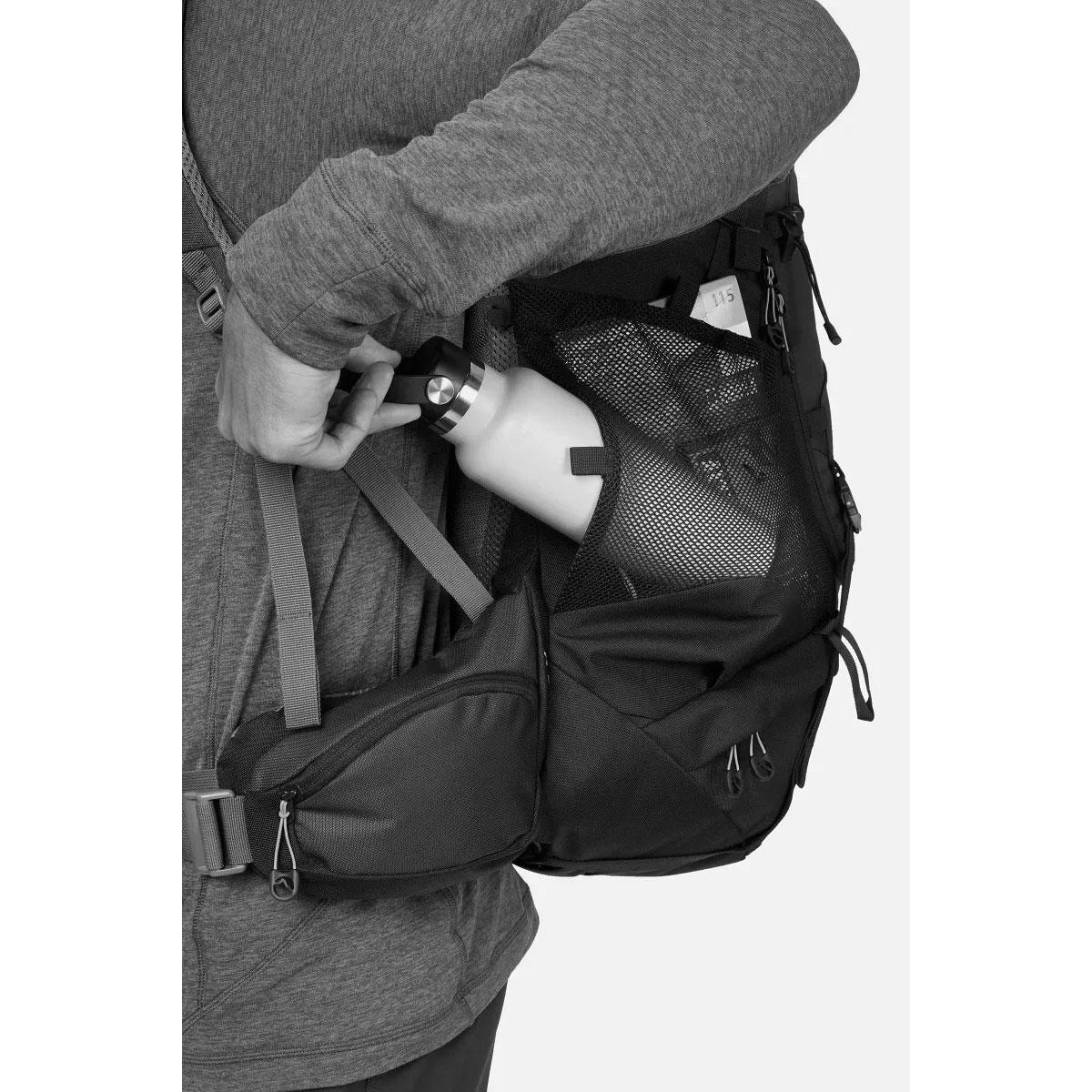 Batoh ponúka jednoduchý prístup ku všetkému vášmu vybaveniu pomocou predného a spodného zipsu s vnútorným deliacim panelom, vďaka ktorému bude všetko usporiadané. Polstrovaný bedrový pás má ľahko prístupné vrecká, ktoré sú ideálne na uchovávanie občerstvenia alebo kompasu po ruke, zatiaľ čo bungee predný bungee je ideálnym miestom na uloženie mokrej výbavy. Na dlhých cestách vás poteší stlačenie základne a bokov, ktoré si môžete prispôsobiť tak, aby ste si zabezpečili nosenie, keď sa zásoby zmenšujú. Batoh je kompatibilný s 3-litrovým vodným vakom, ktorý vám umožní zostať hydratovaný aj na cestách, a má odnímateľnú pláštenku, ktorú možno rýchlo nasadiť, keď zasiahne počasie.