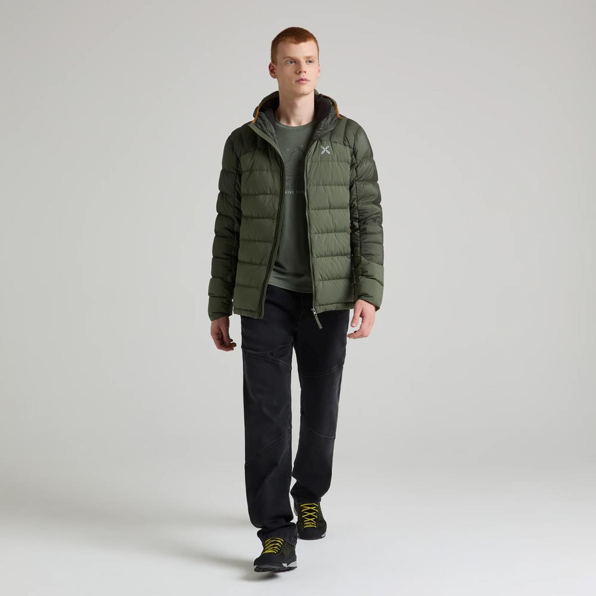 Pánska kapucňa Renon bunda: Zostaňte v teple počas chladných dní. Táto vetrovka a izolačná bunda sú vyrobené z Pertex® Quantum, odolnej a ľahkej látky s hodvábnym dotykom, ideálnej na kombináciu s páperím.