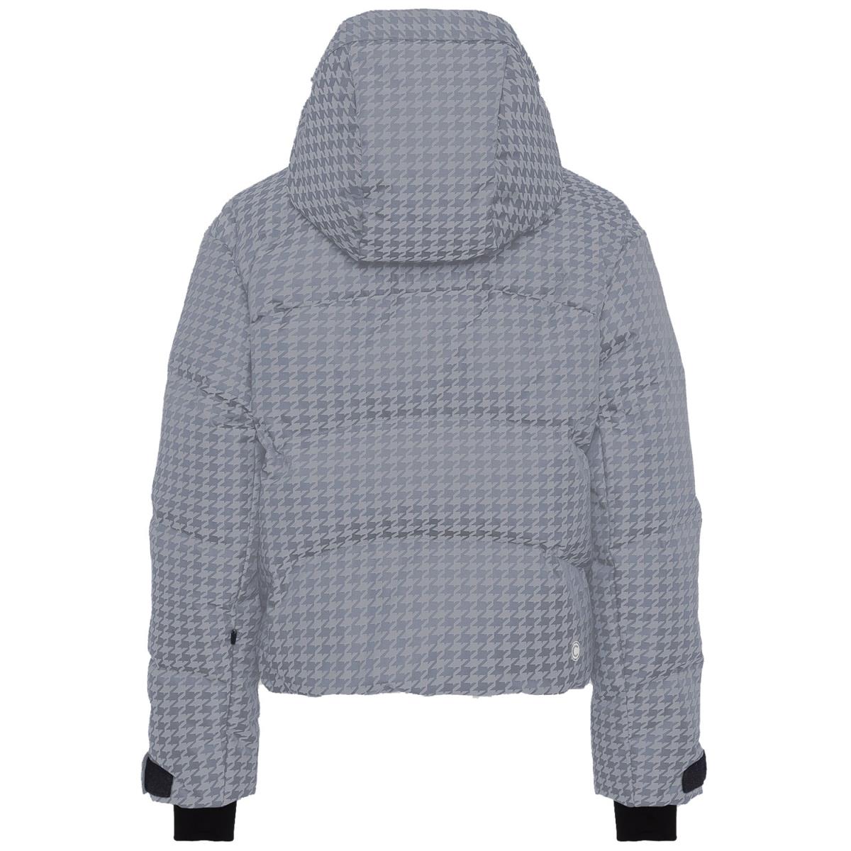 S potiskom v obliki psovega zoba ter vodoodporno in zračno laminirano tkanino ta kratka jakna ponuja dodatno toploto zahvaljujoč elastični udobni podlogi iz grafenovih vlaken in visokotehnološkemu vodoodbojnemu puhastemu polnilu, ki zagotavlja odličen in enakomeren toplotni vnos. Oblačilo, ki združuje stil in tehnično zmogljivost, zasnovano tako, da združuje glamur in funkcionalnost na smučiščih in med après smučanjem.