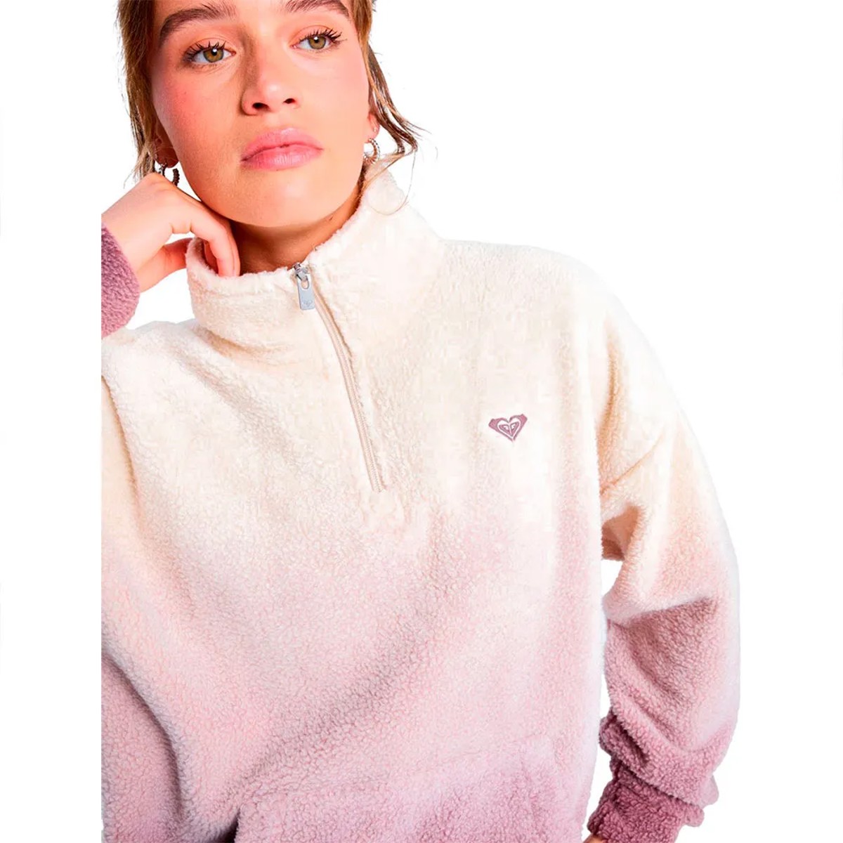 Ženska podloga iz flisa s poliestrsko tkanino sherpa, regular fit, visok vrat in najlonska zadrga. Roxy usnjeni obliž in kengurujev žep.
