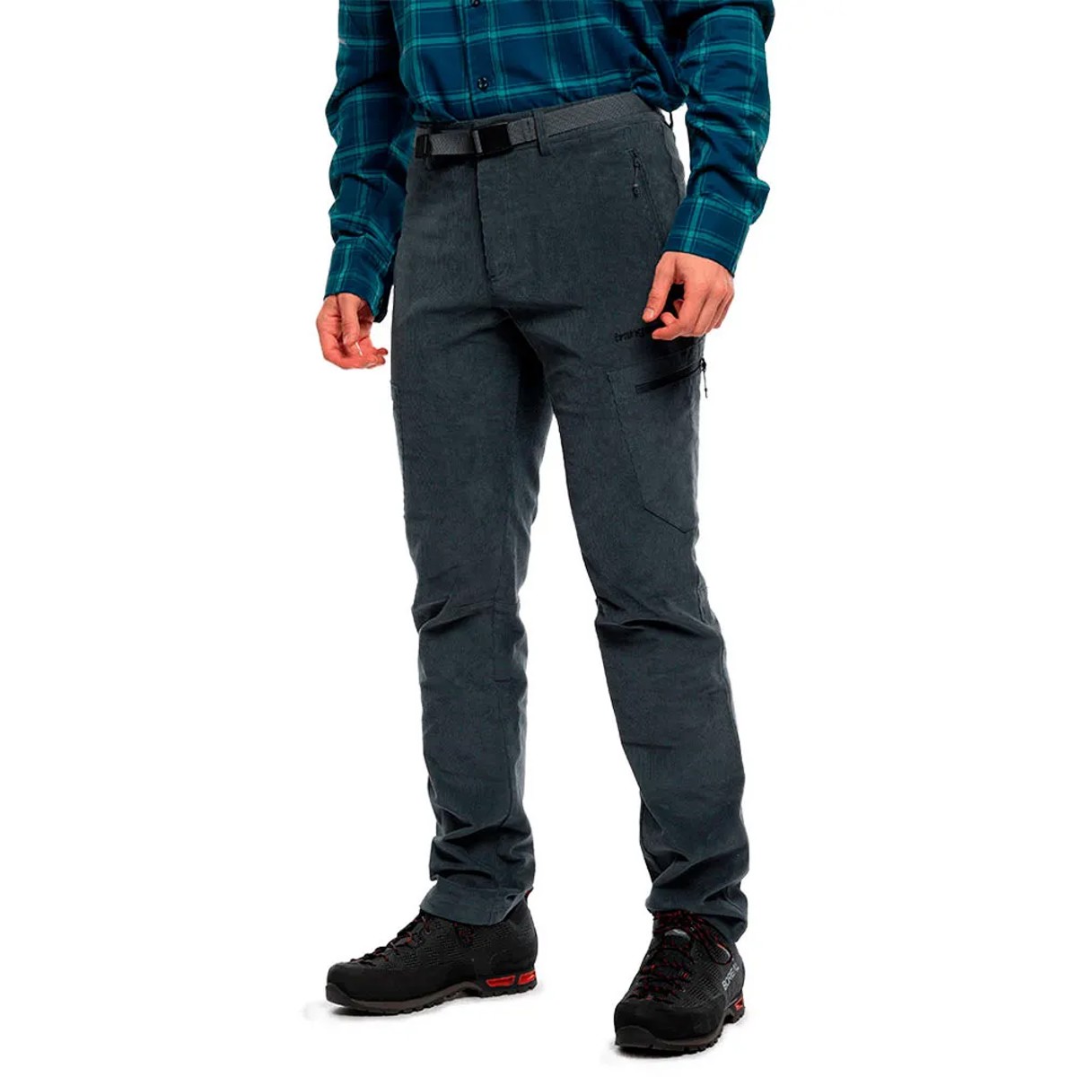 Dolge hlače Goym ST znamke Trangoworld, z elastičnim pasom in pasom, oblikovanimi koleni in V-vzorcem. Žepi z zadrgo in zračna tkanina za dodatno udobje.