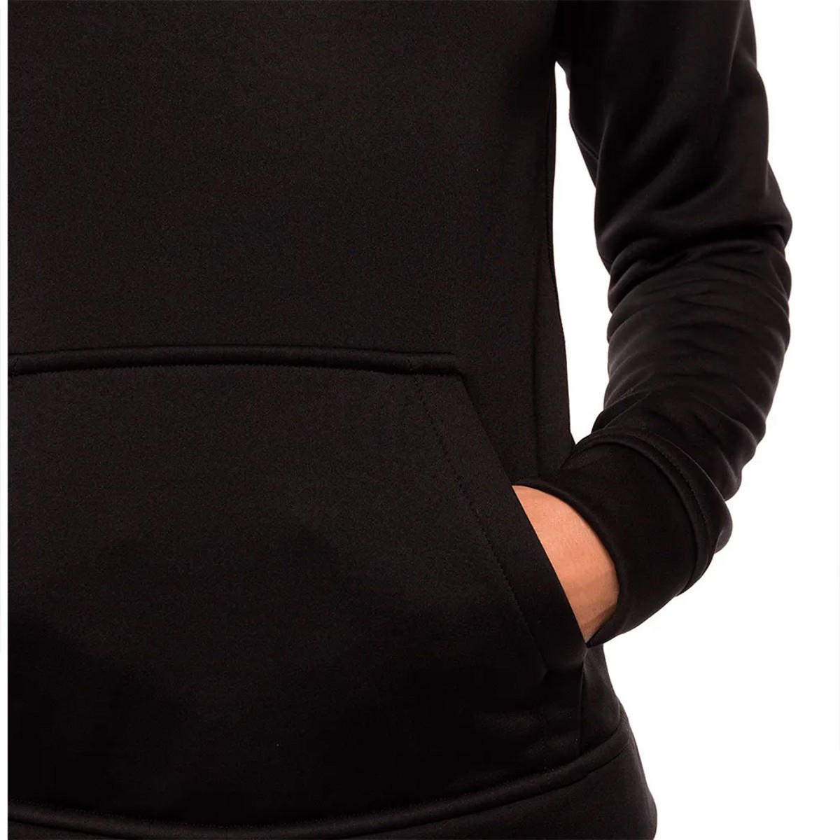 Udobna in prijetna majica z raztegljivo točko za olajšanje svobode gibanja. Fiksna kapuca, sedeči rokavi, manšete in pas iz istega materiala. Sprednji kengurujev žep z dvema dostopoma.