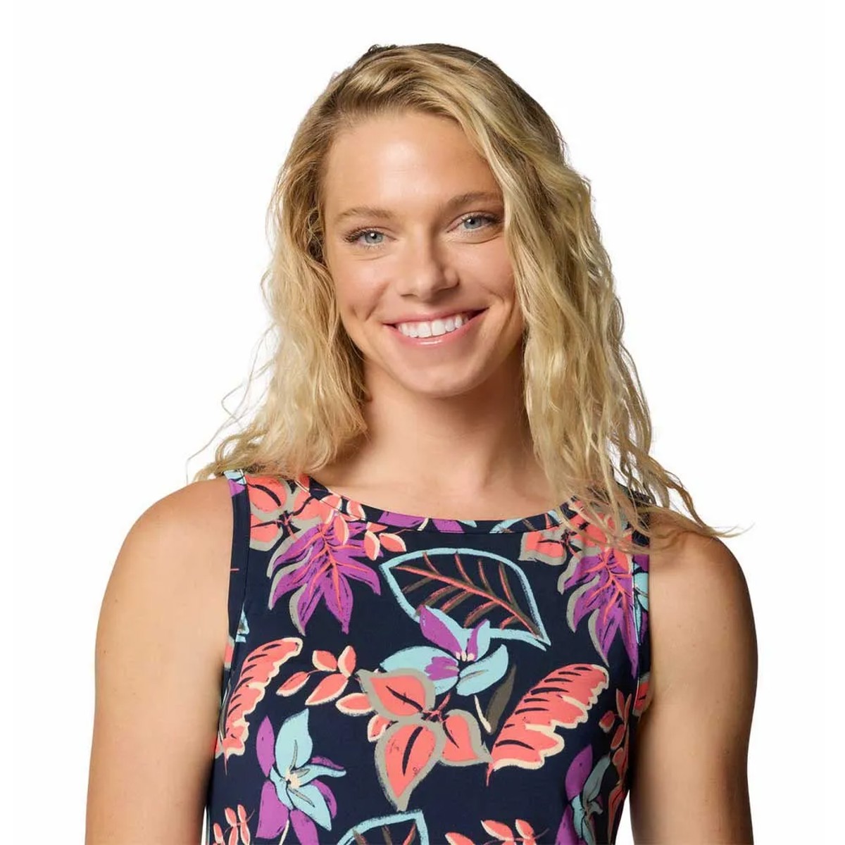 Obleka s tiskom Columbia Chill River je obleka brez rokavov, ki je idealna za uživanje v lepem vremenu. Njegov raztegljiv dizajn s cvetličnim tiskom ponuja slog in udobje. Narejen je iz visoko zmogljive tkanine, absorbira vlago in jo odvleče od telesa, tako da vas ohladi in osuši.