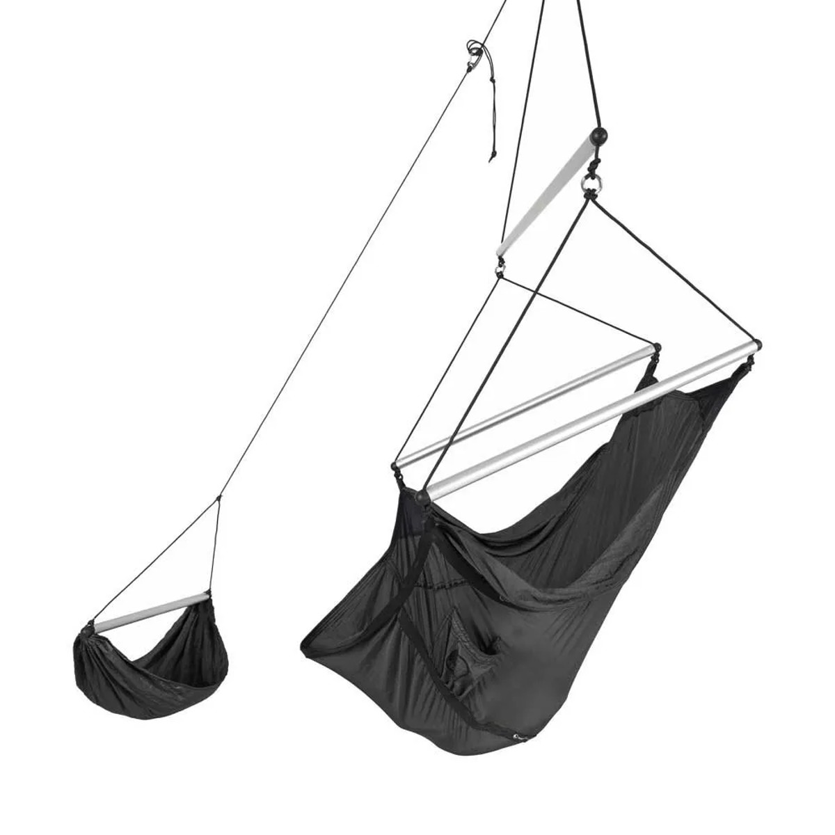 Prenosni viseči stol, enostaven za namestitev, idealen za sprostitev kjerkoli. Izdelana je iz trpežnega in lahkega padalskega najlona z eno samo sidrno točko. Vključuje vrv in karabiner.