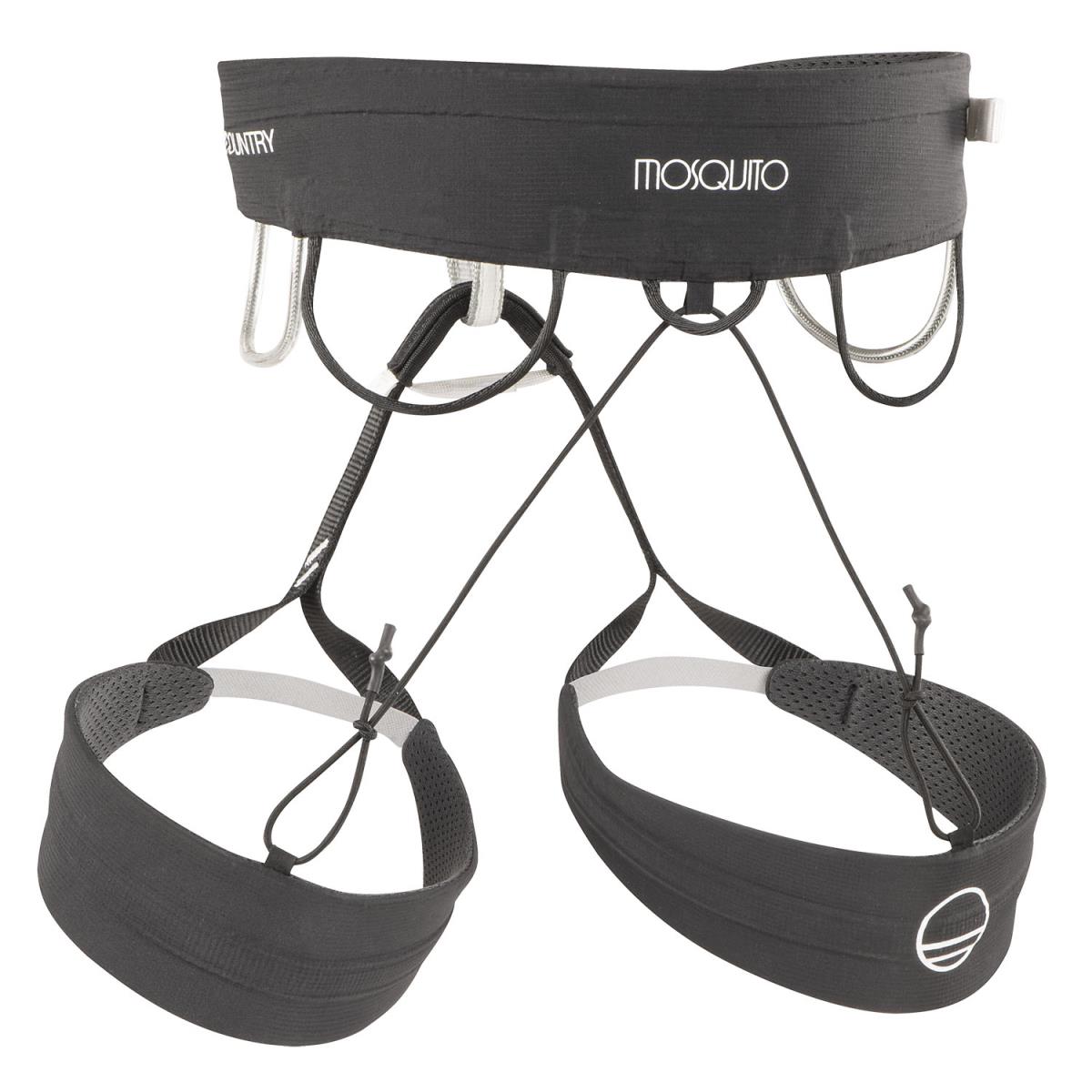 Opremljen je z lahkimi zankami: dve togi sprednji zanki, dve mehkejši zadnji zanki. Vse zanke za opremo so zasnovane posebej za držanje opreme in za lažje odstranjevanje iz pasu. Pomembna varnostna funkcija je indikator obrabe na ojačani spodnji priključni točki. Ima samozaklepno aluminijasto drsno zaponko na pasu, ki zagotavlja varno in udobno prileganje, ter lahke podporne zanke za noge z elastičnimi trakovi. Mosquito se zloži v majhne velikosti in je na voljo v elegantnem dvobarvnem dizajnu.