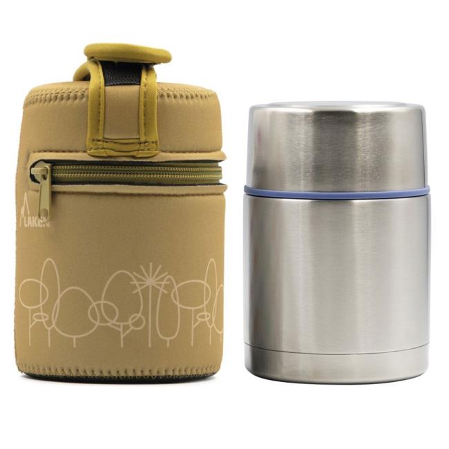 Termo para alimentos de medio litro de capacidad, para llevar la comida siempre lista contigo a todos lados, transportándola cómodamente en esta preciosa funda de neopreno de la colección Drink Life!, modelo Forest.